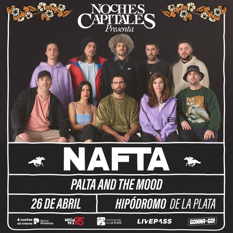 Luego de agotar entradas en dos funciones en el Gran Rex y recorrer distintos puntos del país, Nafta continúa su exitosa gira 2024 llevando su música a nuevas ciudades. El show en La Plata será una experiencia a cielo abierto con una puesta en escena impactante y todo el groove característico de la banda. La noche contará además con la participación especial de Palta and the Mood como banda soporte.