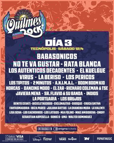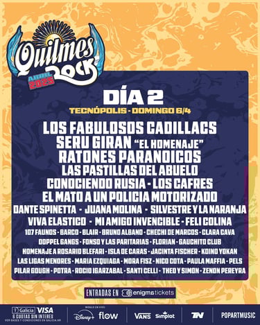 l Quilmes Rock 2025 ya tiene fecha, lineup y entradas a la venta. El festival más icónico de Argentina se llevará a cabo los días 5, 6 y 12 de abril, reuniendo a más de 60 artistas en un evento que promete hacer historia. Con figuras legendarias del rock, nuevas generaciones y grandes exponentes de la música nacional e internacional, esta edición será una de las más memorables.